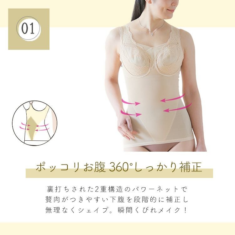 ●背付きスタイル…柔らかく段差ができやすい脇・背中をV字のレースでなめらかにすることでスッキリした後姿に。