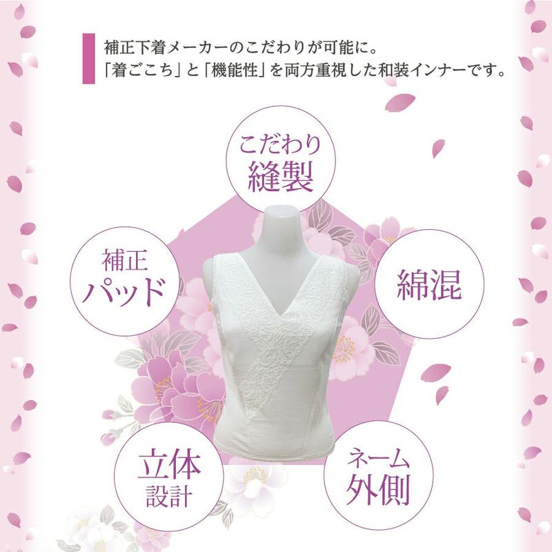 着付けの胸元がスッキリします。丈の短さが着心地を半減させていましたが、新商品は丈が長くなっている様なので、次回に購入したいと思っています。
