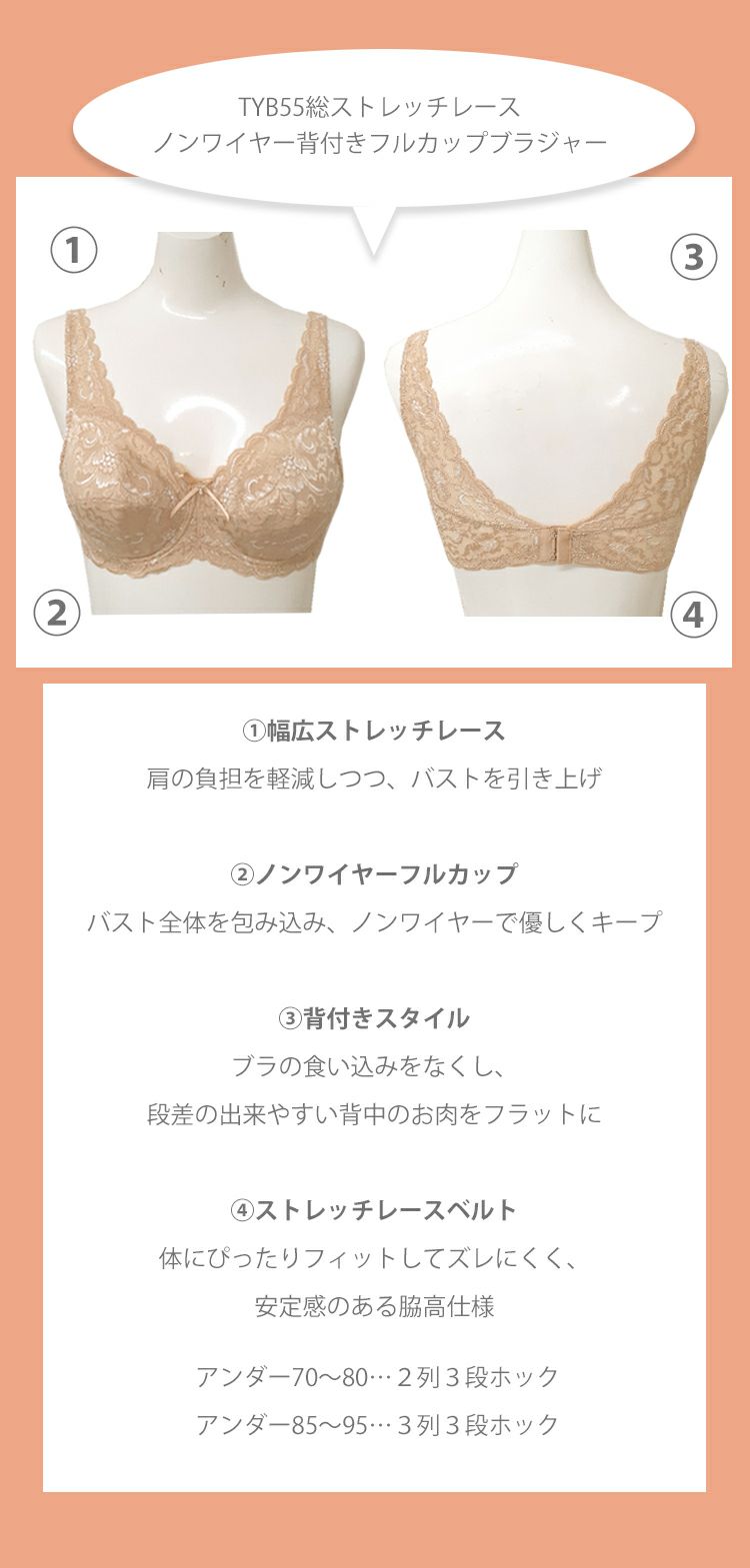 他の画像を見る 【ノンワイヤー/アンダー70~95cm】 TYB55 総ストレッチシリーズ 背付きノンワイヤーフルカップブラジャー 補正力中 メール便 SALE アウトレット TY55シリーズ まとめ買い対象 通常販売価格 ¥ 7,480 のところ 販売価格 ¥ 3,740 税込 お気に入りに登録する