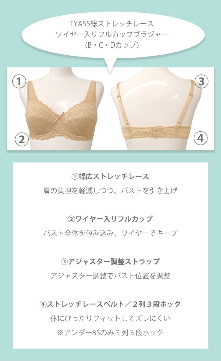 TYA55-efg 総ストレッチシリーズ ワイヤー入りフルカップブラジャー 大きいサイズ