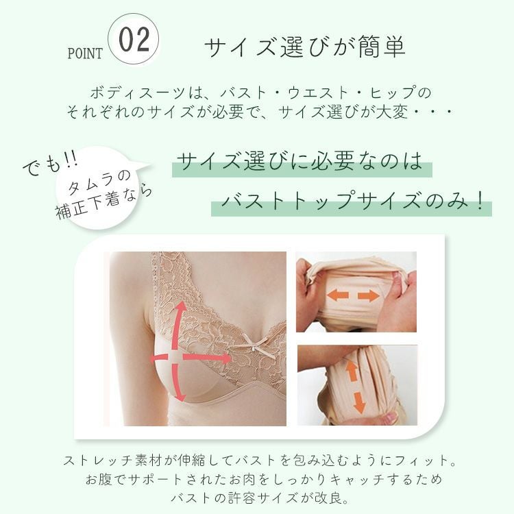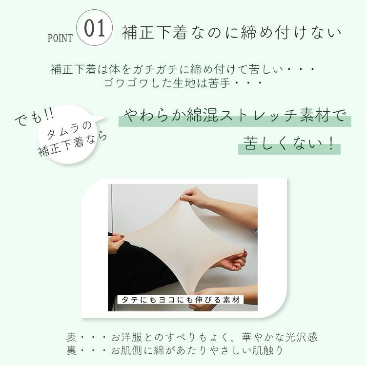 締め付けがなく包み込むように体をサポートしてくれる。外出時はミディアムで家ではこれ一択になりそう。今回ブラとガードルを同時購入。夏場はブラとガードルで快適にすごせそう。追加でモカ色のボディスーツを購入しました。深めの色合いが気に入りました。ガードルはこの色が有りますがブラが無いのが残念です。タムラさん、この色で是非ともブラも作って下さい。