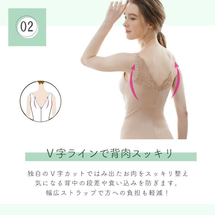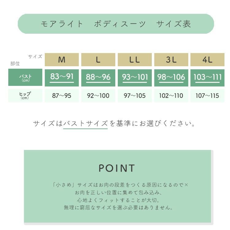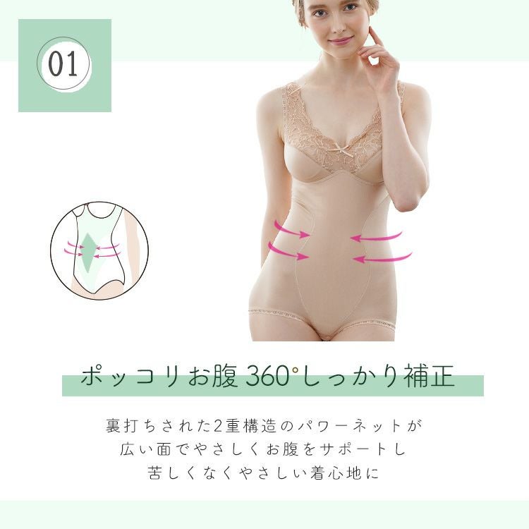 マシュマロタッチなふんわり素材で、気になるお肉をすっぽり包み込み、なめらかに整えるボディスーツです。