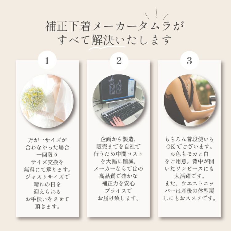 ドレス用インナーの形やサイズ選び、到着後のフィッティングなど、お悩みの点がありましたらお気軽にお問合せくださいませ。