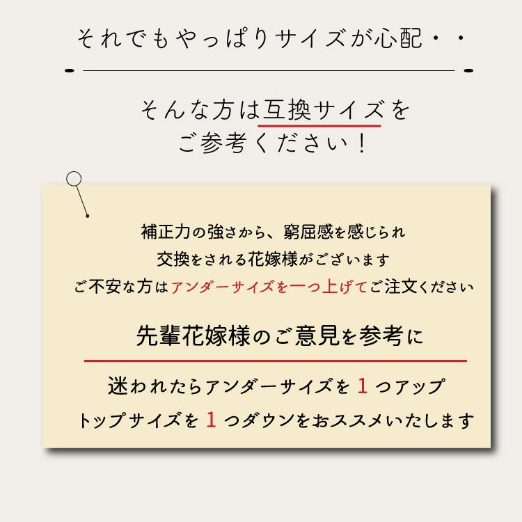 安心の拡張フックがそれぞれについたコンプリートセットがついに登場! バストとウエストをそれぞれ別のサイズが選べるので、よりフィット! 最高のボディーラインを実現! ナチュラルなベージュカラーは、ブライダルインナーとしてはもちろん、パーティードレスや社交ダンス・フラダンス・ピアノ発表会など各種ドレス用の下着としてもご利用いただけます。 明るい純白の白は、万が一ドレスがズレてインナーが見えることがあっても安心感がありスタンダードな一枚。