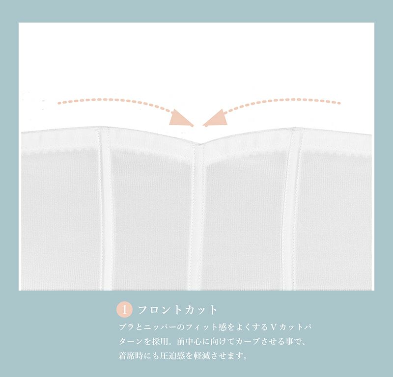 ブラとニッパーを組み合わせることで、バストアップとウエストの引き締めを同時に叶えます。ドレスに映える立体的なボディラインを実現。