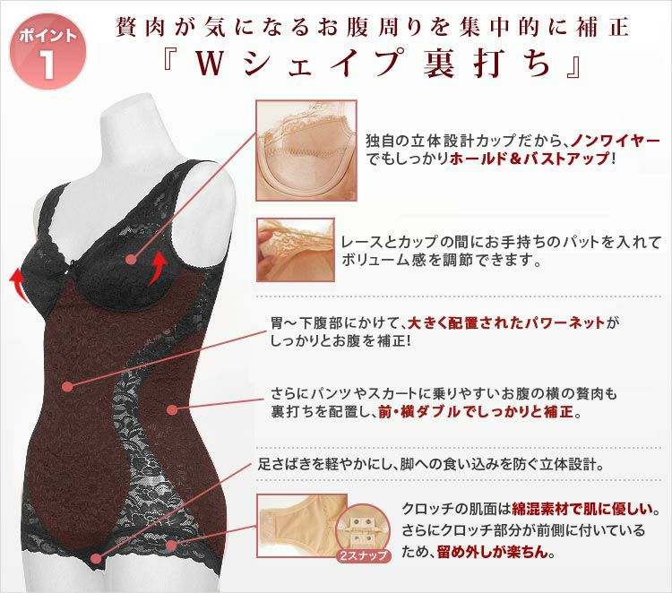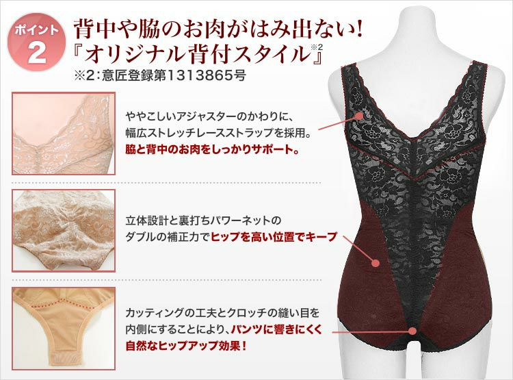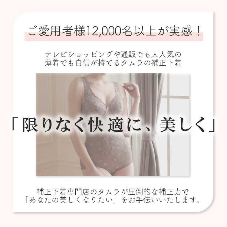 ボディースーツで迷ったらコレで間違いなし! きちんと補正してくれるのに、着心地はラクラク。 タムラの定番機能「アンダースライド式カップ」や「背付きスタイル」が全て試せる、お手頃プライスの人気NO.1ボディスーツです。