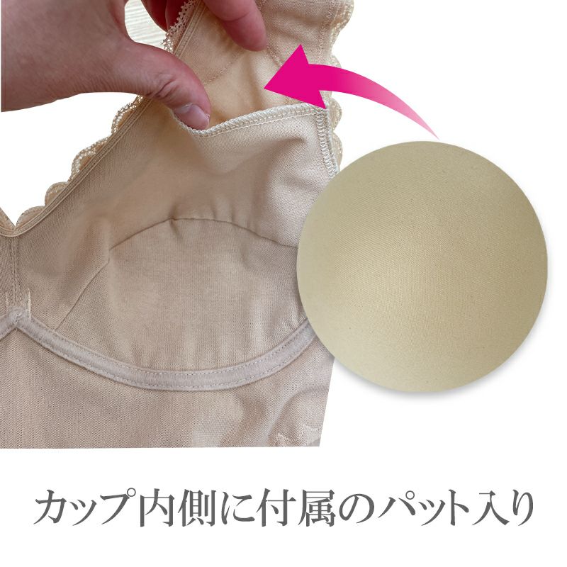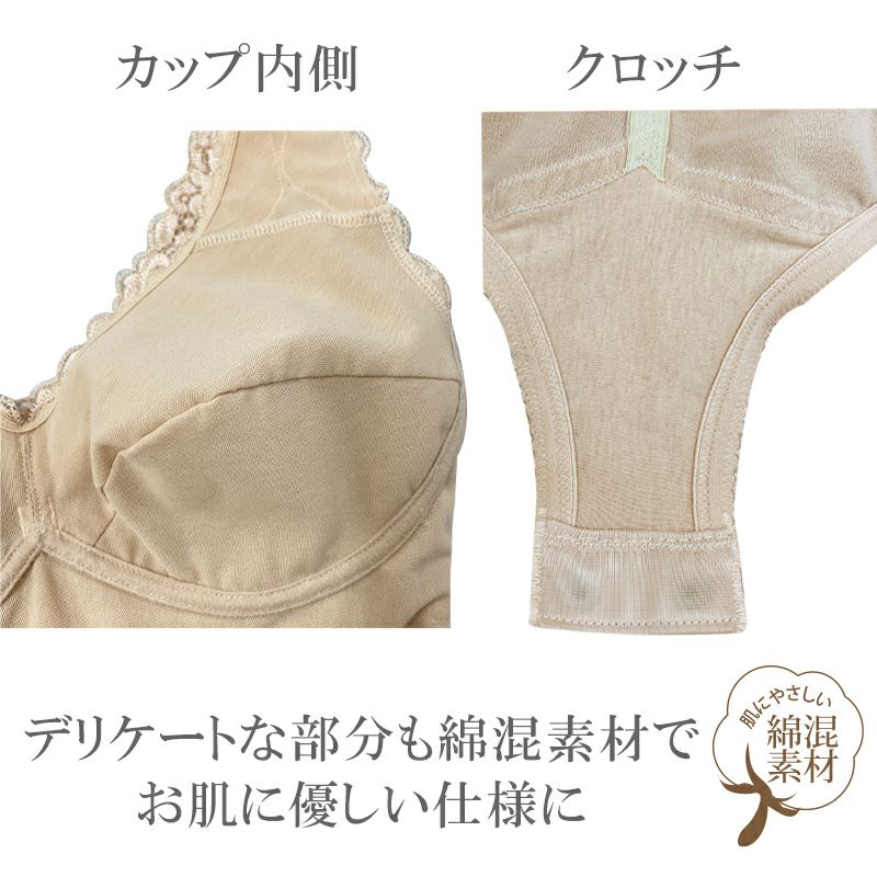 カップ内のメッシュテープが伸縮する事で幅広いサイズのバストにフィットします