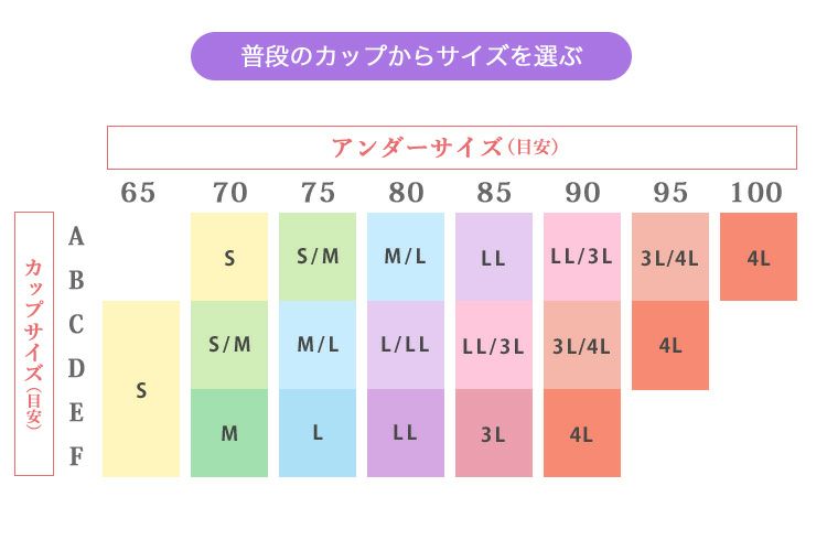 バストの形を整える薄手の丸パッド カラー「シナモン(茶系)」 カラー「ヴァニラ(ライトベージュ系) カラー「パウダーグレー」 サイズはアンダーバストで選びます サイズの選び方 サイズ表 参考サイズ