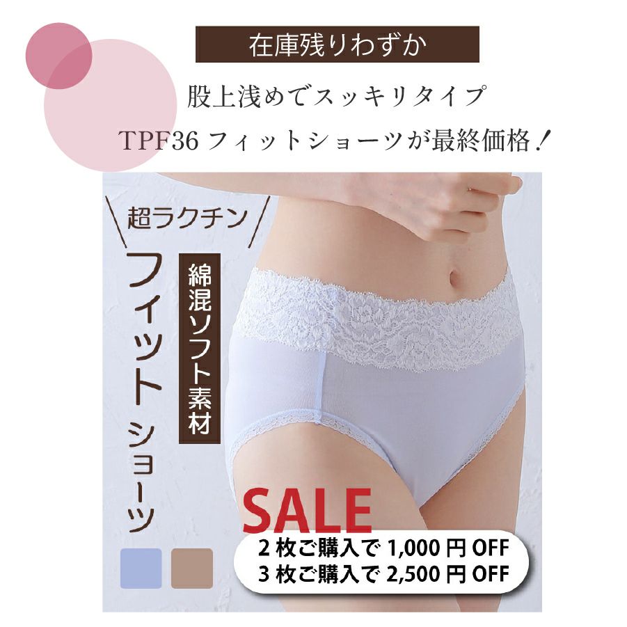 他の画像を見る TPF38 綿混のびのびフィットショーツ[M便 1/5] 補正力弱 メール便 3枚セット割引あり 通常販売価格 ¥ 2,090 のところ 販売価格 ¥ 2,090 税込 お気に入りに登録する