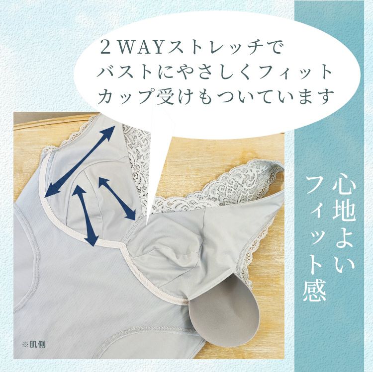 身につけた瞬間から背筋がスッキリ、優しいけどしっかり補正される感じがありました。きつく苦しく感じるのは苦手なので心地良く支えられて着ていられます。 強いて言うなら生地のレースがもう少し肌あたり優しいと敏感肌には嬉しいです! でもまたリピートしようと思っています。