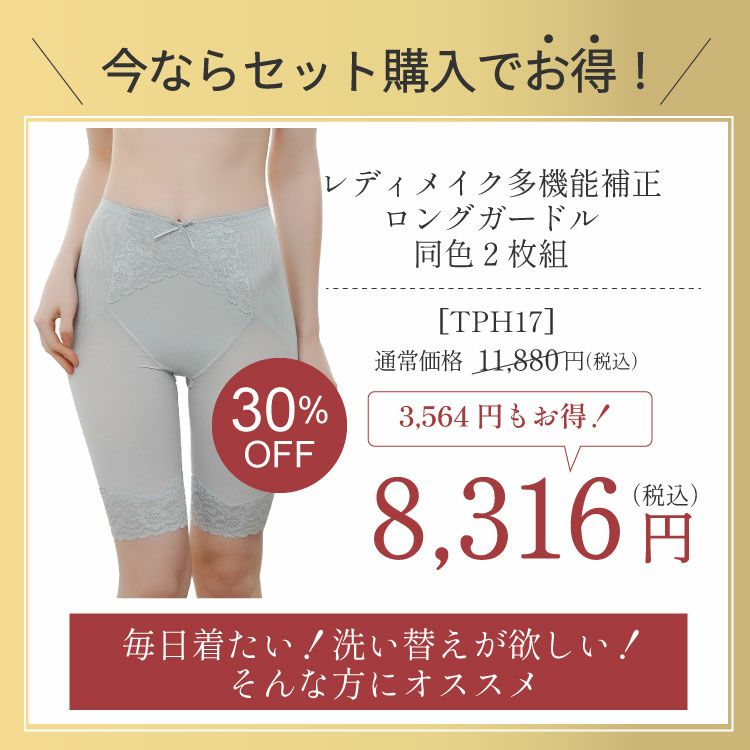 他の画像を見る タムラ人気NO.1シリーズに2枚組登場! TPH17 レディメイク多機能ロングガードル2枚組 補正力中 メール便 SALE お得なセット組 通常販売価格 ¥ 11,880 のところ 販売価格 ¥ 8,316 税込 お気に入りに登録する