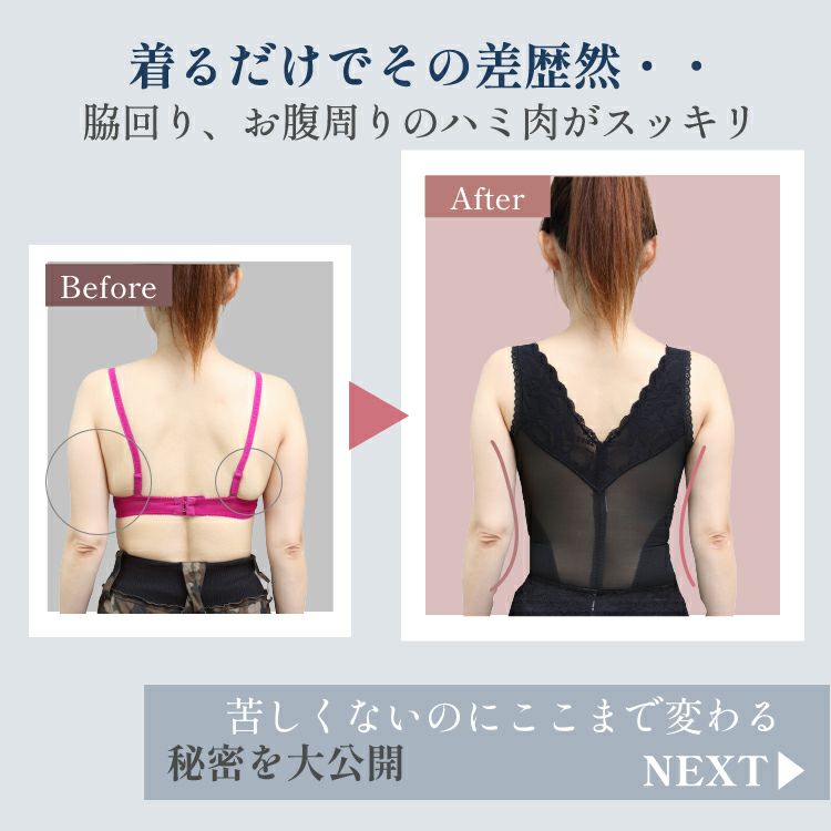 ぼこぼこになってしまった背中のお肉を「抑えて」「なめらかに」「整える」だけで こんなにもスッキリした背中のスタイルが作れます。