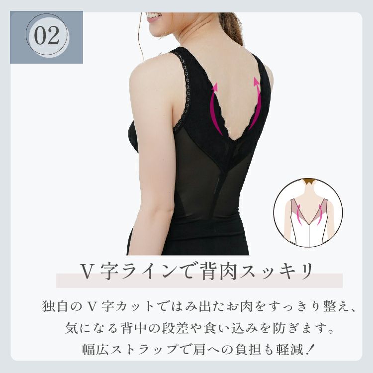 V字の背付き機能で薄着の後ろ姿にも自信が持てる、パワーネット多機能補正下着ボディスーツ >>商品はコチラ