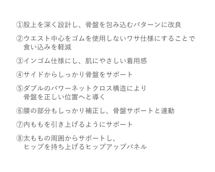 下腹のポッコリや、女性のお悩みは「姿勢」や「骨盤のゆがみ」が原因かも。 特許取得の骨盤サポート機能で、サポート&キープしてくれるタムラの人気ガードル。 しっかりめの履き心地で、ぐらつきやすい骨盤を支えてくれるのでオフィスワークにもおすすめです!