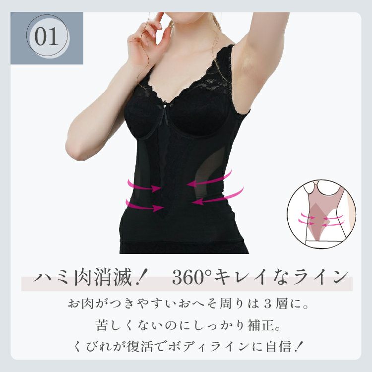 たるんだ肌をきゅっと!引き締めてくれる感じがとてもいいです背中のデザインが、とても好きです。何枚か使用していますが、ハードなのは初めて購入しましたがとても着心地もいいです。もう一枚購入したいです。