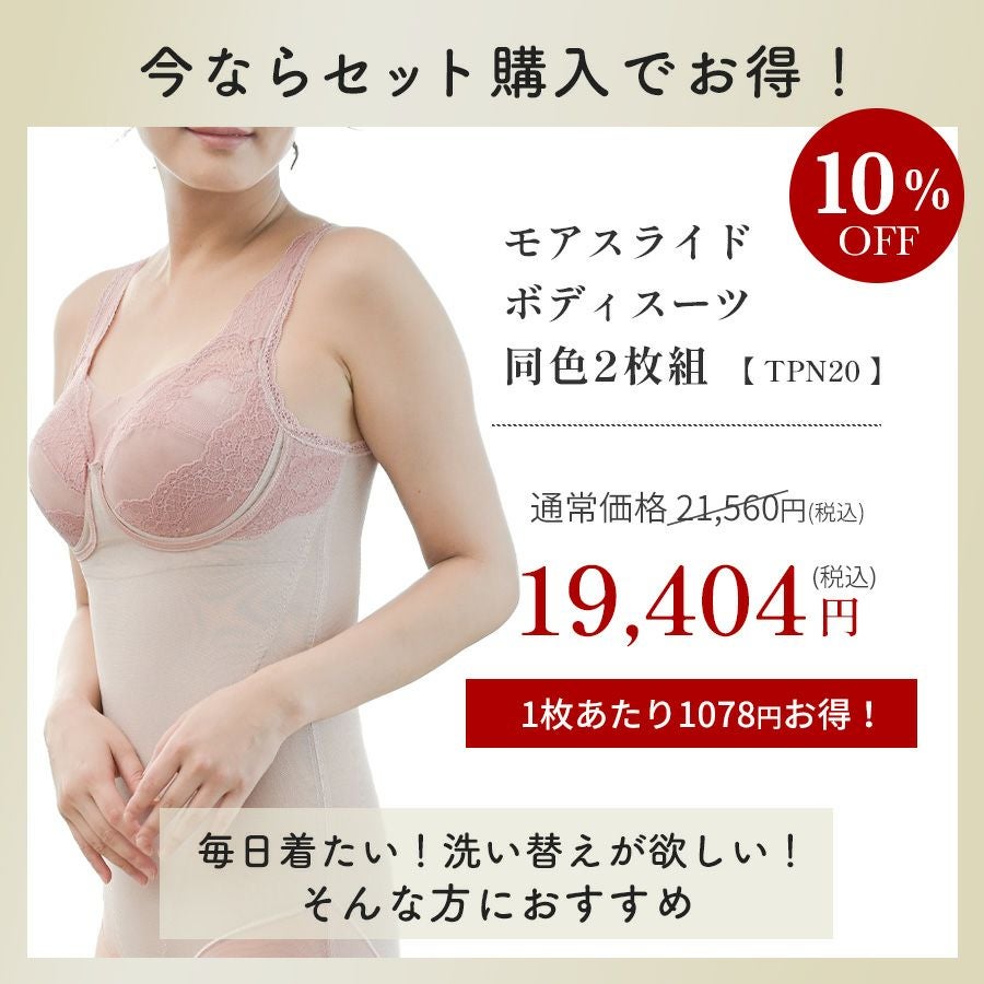 他の画像を見る 大ヒットモアスライドについにセット商品が発売開始!まとめ買いで1枚当たり1000円お得♪ まるでオーダーメイドのようなフィット感!モアスライドボディスーツお得な2枚組セットTPN20_2 補正力中 お得なセット組 通常販売価格 ¥ 21,560 のところ 販売価格 ¥ 19,404 税込 お気に入りに登録する