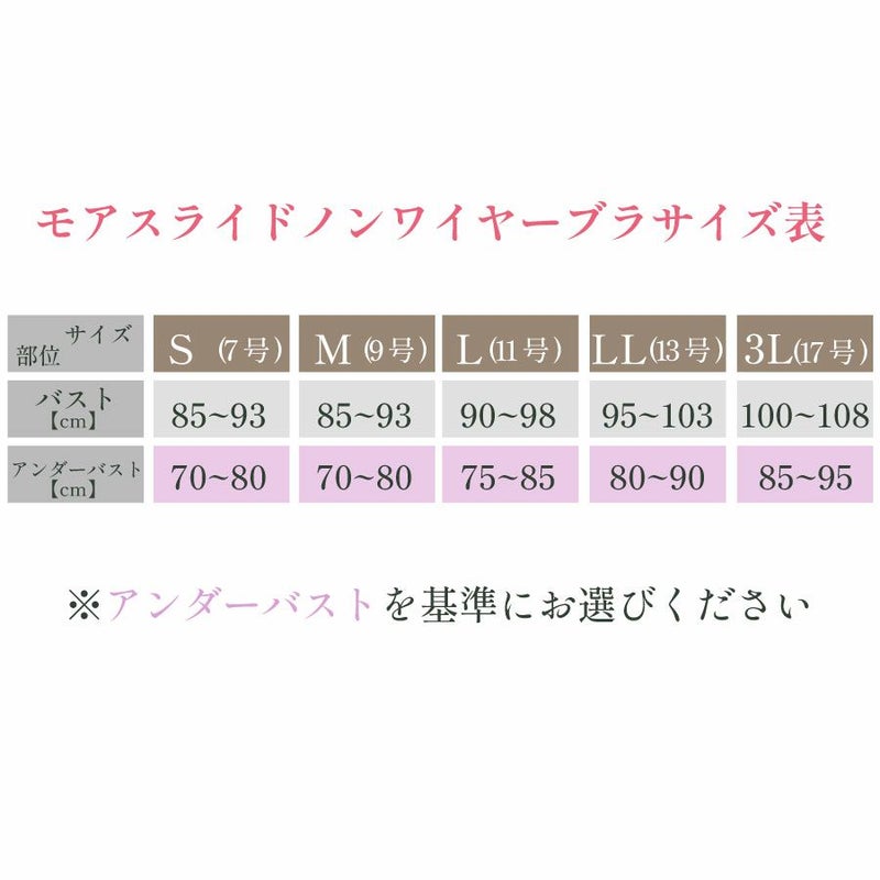バストサイズの左右差にお悩みの方、月経・授乳の影響でバストの張りが変化しやすい方、体重の増減で下着サイズが変りやすい方、グラマーサイズでバストが安定しづらい方はぜひタムラのモアスライドをお試しください。