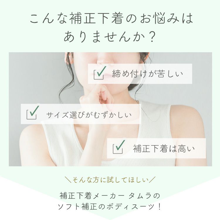 締め付けがなく包み込むように体をサポートしてくれる。外出時はミディアムで家ではこれ一択になりそう。今回ブラとガードルを同時購入。夏場はブラとガードルで快適にすごせそう。追加でモカ色のボディスーツを購入しました。深めの色合いが気に入りました。ガードルはこの色が有りますがブラが無いのが残念です。タムラさん、この色で是非ともブラも作って下さい。