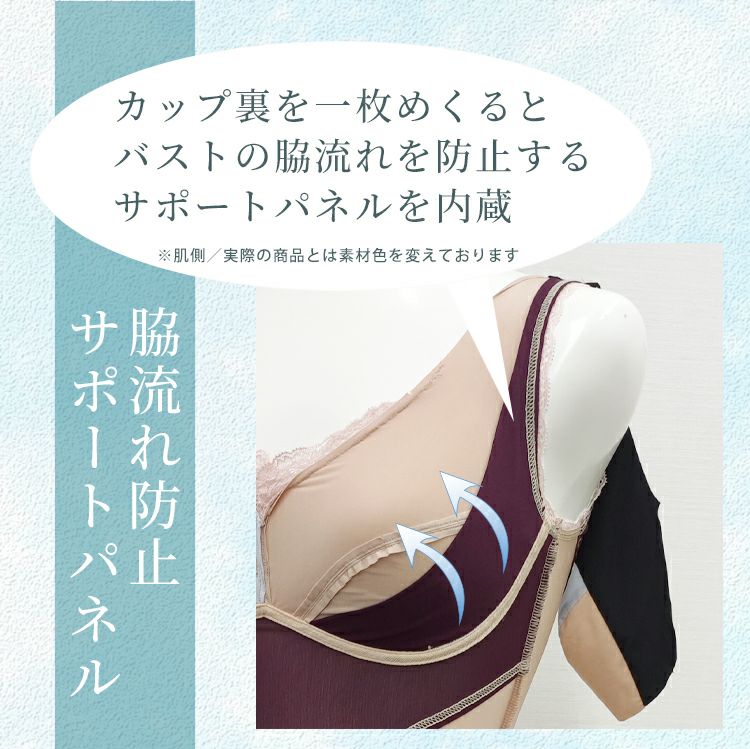 モアスライド ボディシェイパーは、アンダースライドカップに加え、グラマーバストさん用にカップが伸縮する機能を搭載した新しいカップ構造のボディシェイパーです。