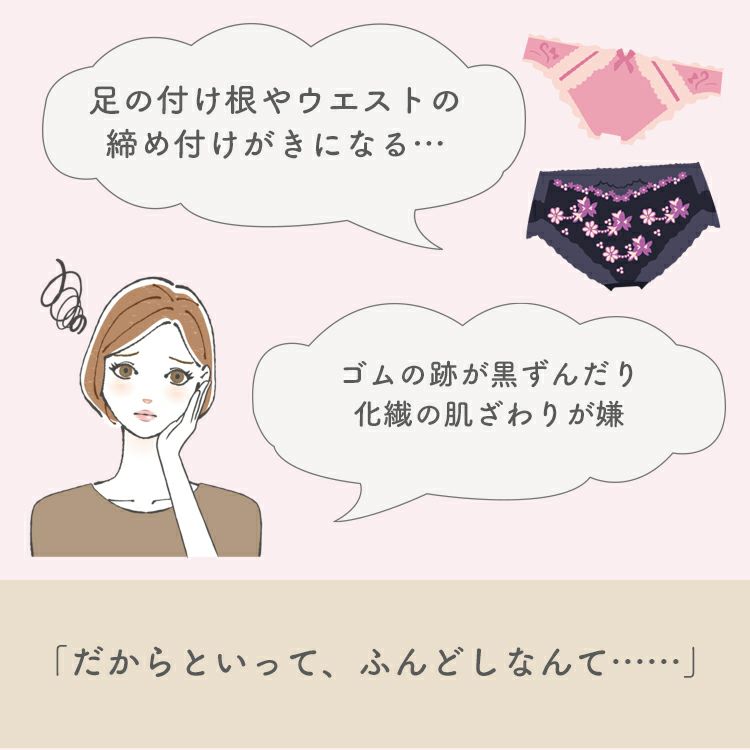 コットンの中でもとても柔らかい素材なので敏感肌でも問題なく、また、しめつけが無いので家で履くにはぴったりです。