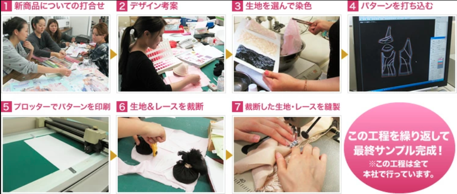 女性デザイナー・女性スタッフが製品作りに関わり、女性のための下着作りをしております。